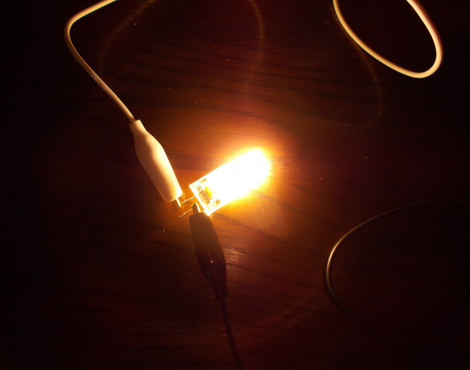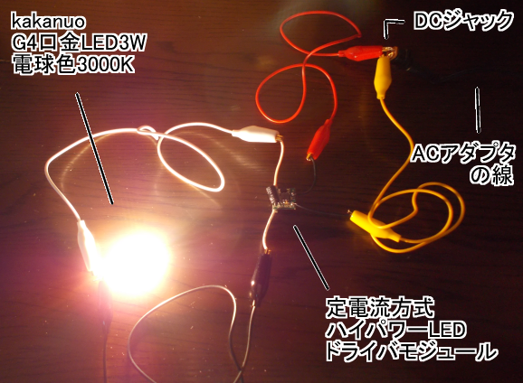 Amazon.com(米国)の商品説明においては「Please note this G4 LED Bulb's working voltage range is AC or DC10-20V.」と書かれており、AC-ACアダプタがあれば交流でも使用できそうだが、試していない。